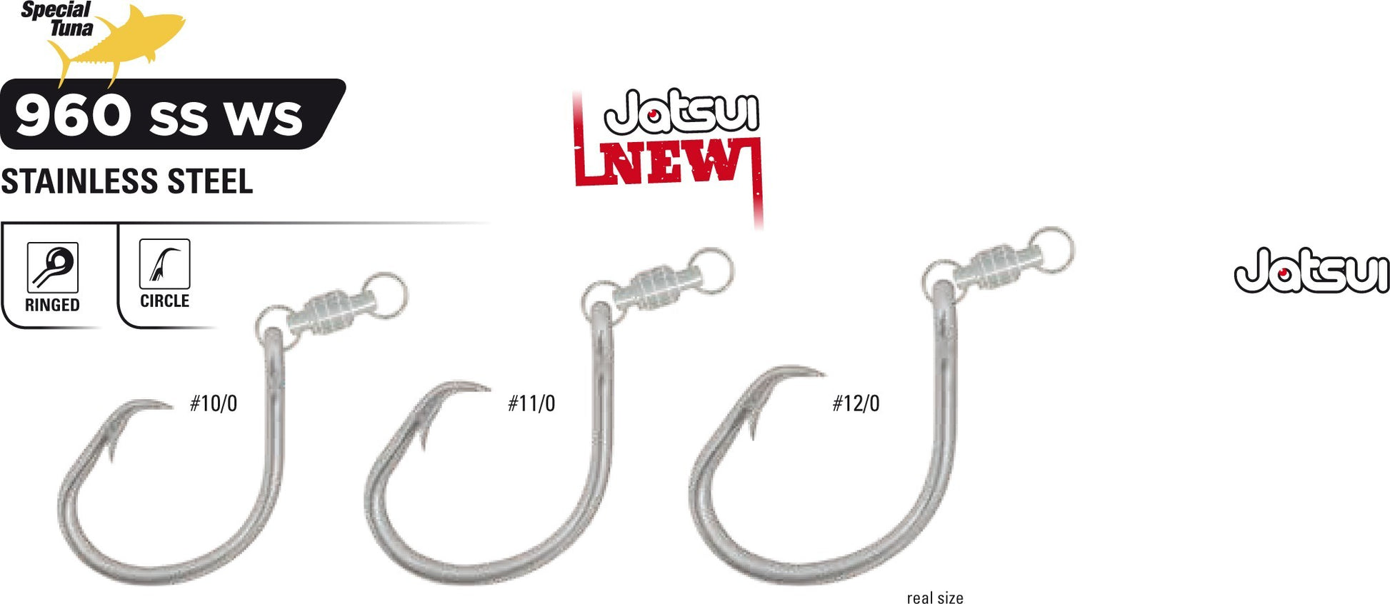 Jatsui ami per la pesca dei tonni, auto ferranti e robusti, completamente stainless steel, con occhiello.