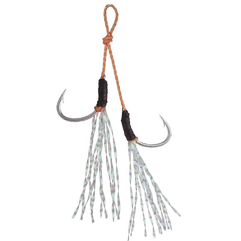 ASSIST BKK Flash-Crash + è appositamente progettato per il micro jigging. Resistente alla corrosione. Le fibre luccicanti legate all'amo aiutano a stimolare i morsi, aumentando la velocità di aggancio.