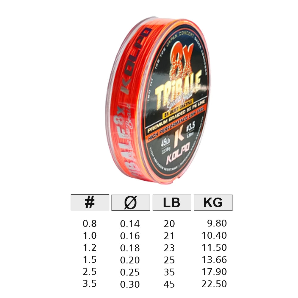 Trecciato a 8 capi in PE alto modulo con aggiunta di fibre di ultima generazione che donano al trecciato Tribale 8 capi un’ alta resistenza al nodo.